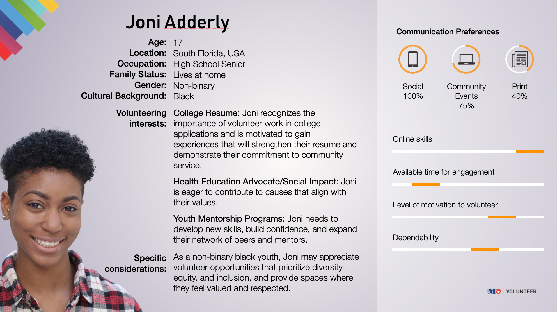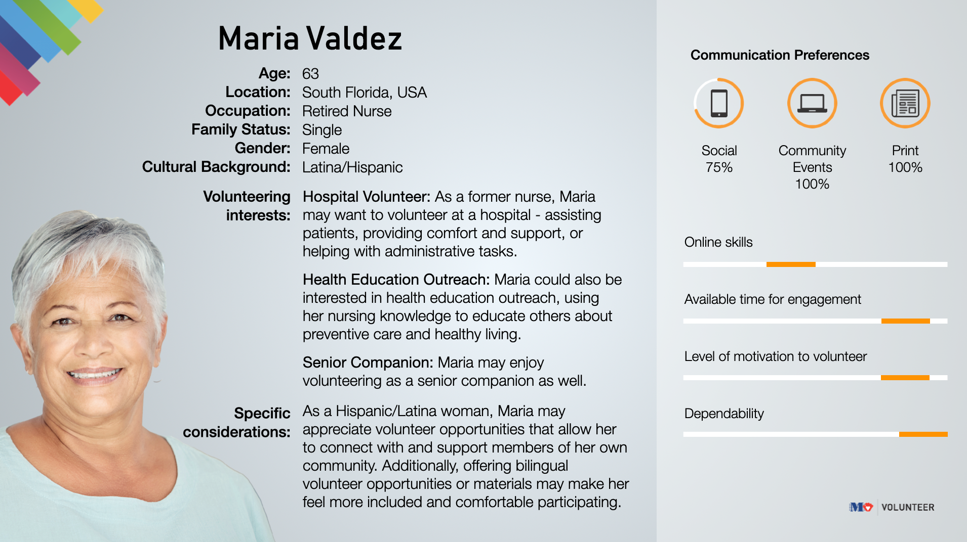 I was brought on to help create a recruitment campaign for hospital volunteers for Memorial Healthcare System. We matched data about current volunteers with potential opportunities and created user personas to guide our campaign.
