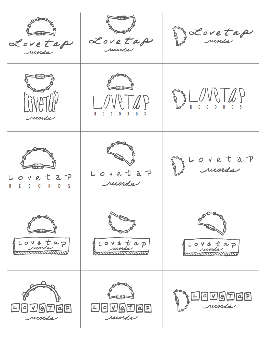 Sketching process for Love Tap Records logo.
